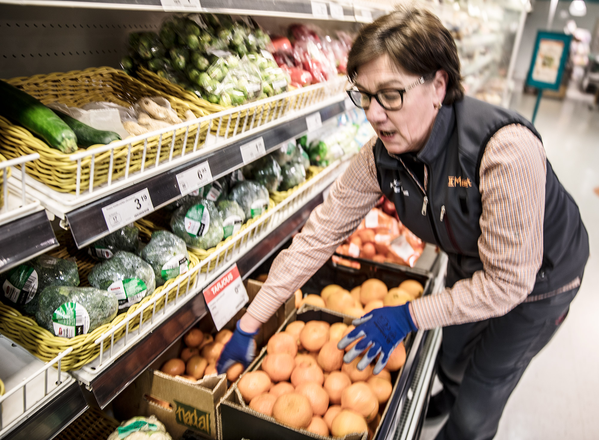 Kauppias Katriina Hotasen vastuulla ovat Hotasten kaupoissa muun muassa tuoretuotteet.