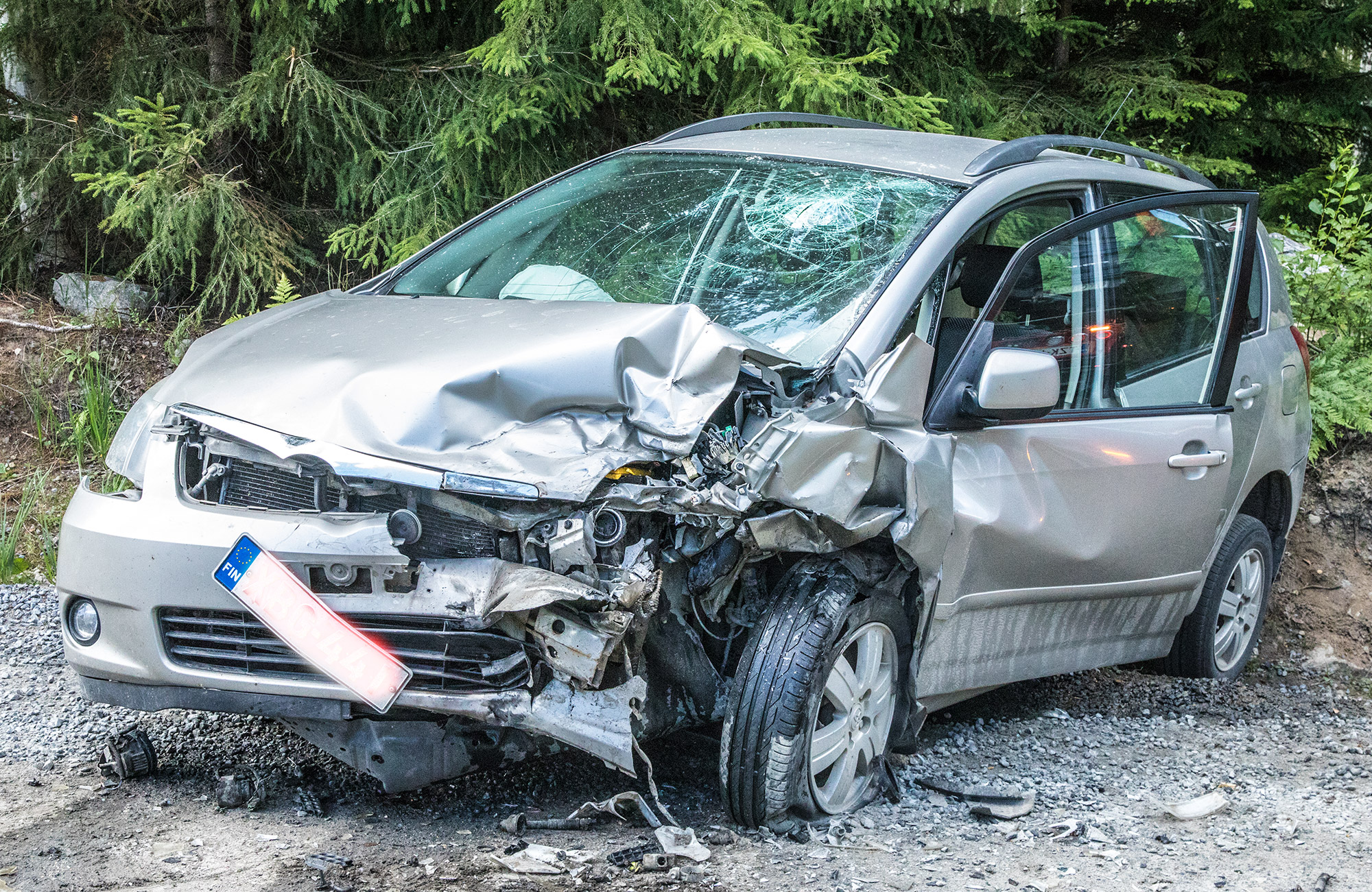 Toyota Corolla Verson kuljettaja lensi päin tuulilasia ja auton etuosan rakenteita. Tosin turvatyynyt ilmeisesti suojasivat häntä jonkin verran.